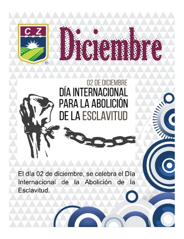 DICIEMBRE El día 02 de diciembre, se celebra el Día Internacional de la Abolición de la Esclavitud.