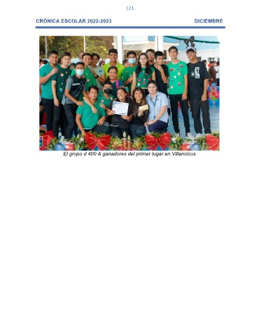 121 CRÓNICA ESCOLAR 2022-2023 DICIEMBRE El grupo d 400 A ganadores del primer lugar en Villancicos