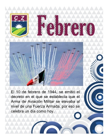 FEBRERO El 10 de febrero de 1944, se emitió el decreto en el que se establecía que el Arma de Aviación Militar se elevaba al nivel de una Fuerza Armada, por eso se celebra un día como hoy.