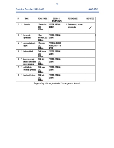 32 Crónica Escolar 2022-2023 AGOSTO Segunda y última parte del Cronograma Anual.