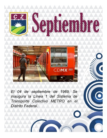 SEPTIEMBRE El 04 de septiembre de 1969, Se inaugura la Línea 1 del Sistema de Transporte Colectivo METRO en el Distrito Federal.