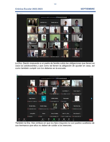 La Dra. Dando respuesta a un padre de familia sobre las obligaciones que tienen en