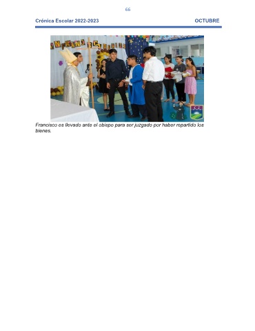 66 Crónica Escolar 2022-2023 OCTUBRE Francisco es llevado ante el obispo para ser juzgado por haber repartido los bienes.