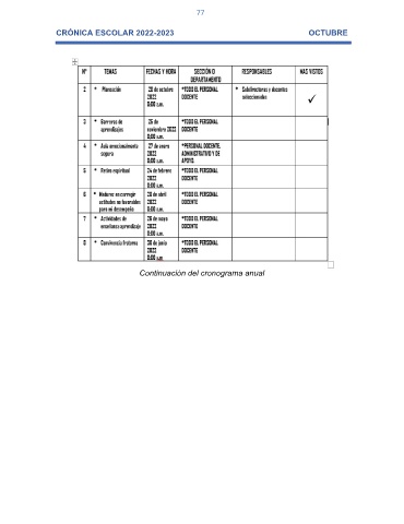 77 CRÓNICA ESCOLAR 2022-2023 OCTUBRE Continuación del cronograma anual