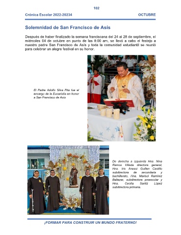 nuestro padre San Francisco de Asís y toda la comunidad estudiantil se reunió