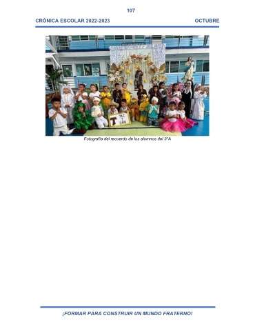 107 CRÓNICA ESCOLAR 2022-2023 OCTUBRE Fotografía del recuerdo de los alumnos del 3°A ¡FORMAR PARA CONSTRUIR UN MUNDO FRATERNO!