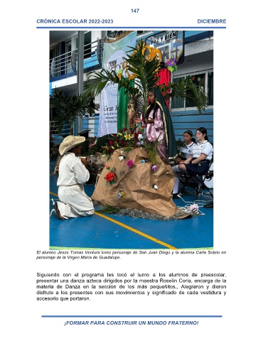 El alumno Jesús Tomas Ventura tomo personaje de San Juan Diego y la alumna Carla Sotelo en
