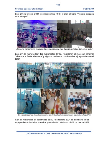 En estas imágenes visualizamos como se vivió la fiesta misionera con los misioneritos HFIC.