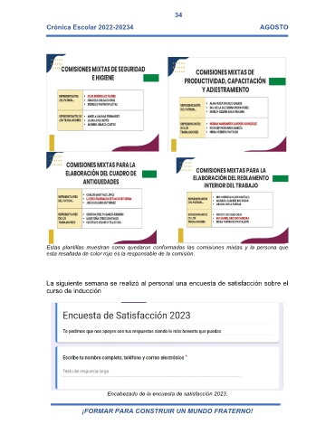 Estas plantillas muestran como quedaron conformadas las comisiones mixtas y la persona que