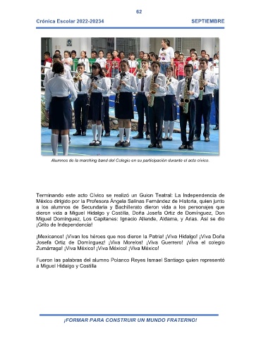 Josefa Ortiz de Domínguez! ¡Viva Morelos! ¡Viva Guerrero! ¡Viva el colegio