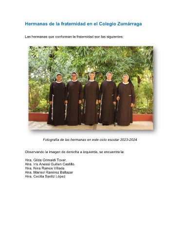 Hermanas de la fraternidad en el Colegio Zumárraga
