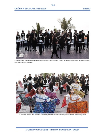 La Marching band interpretando canciones tradicionales como Acapulqueña linda Acapulqueña y