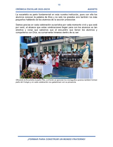 La eucaristía es parte fundamental en esta nuestra institución, pues con ella los