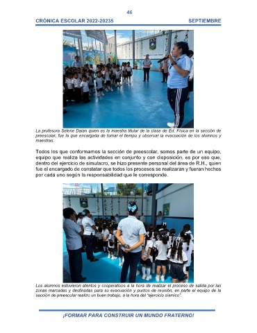 preescolar, fue la que encargada de tomar el tiempo y observar la evacuación de los alumnos y