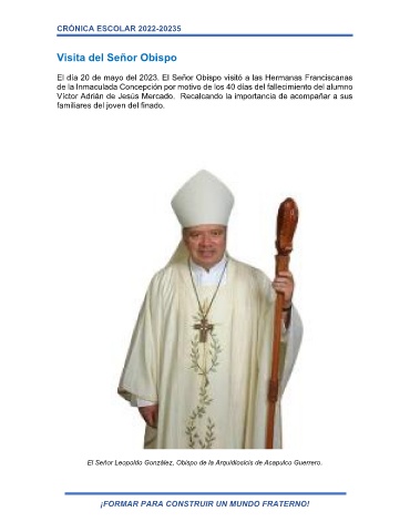 El día 20 de mayo del 2023. El Señor Obispo visitó a las Hermanas Franciscanas
