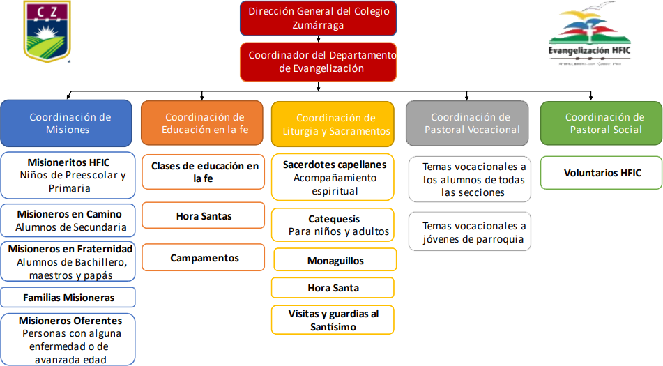 El Departamento de Evangelización está integrada por 5 coordinaciones.